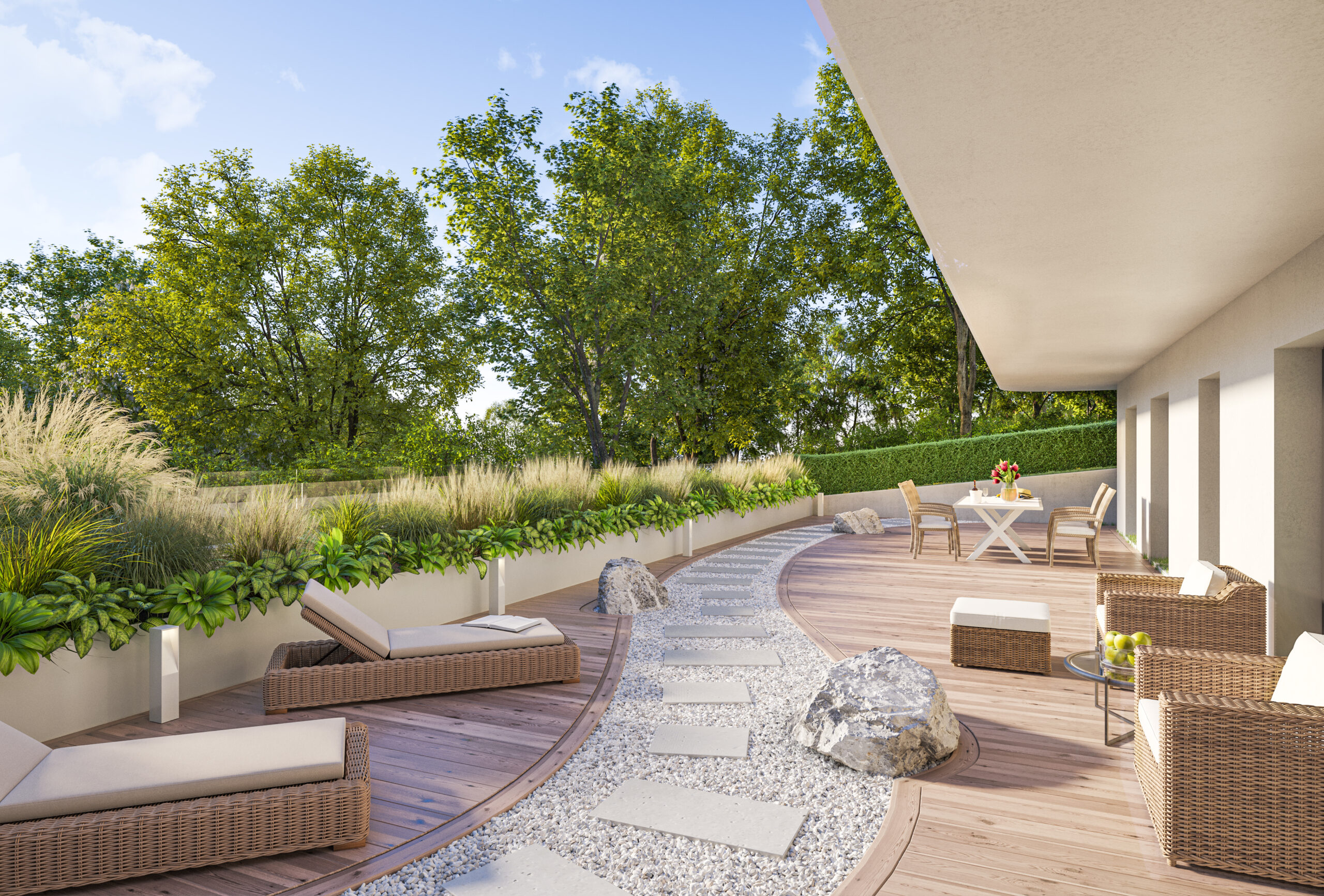 Wielkim atutem tej wyjątkowej inwestycji są przestronne balkony, elegancki taras dachowy oraz starannie zaprojektowany ogród, które podnoszą komfort życia, podkreślają unikalny charakter tego miejsca i tworzą harmonijne połączenie z niezwykłą naturą otaczającą inwestycję.
