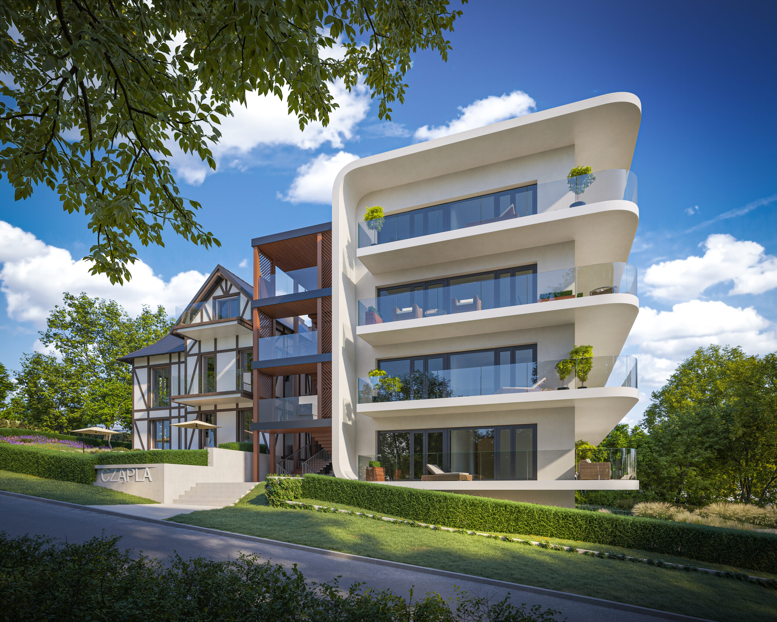 Czapla 2 łączy historię z współczesnością w wyjątkowy sposób. W skład projektu wchodzi odrestaurowany historyczny budynek z przywróconym charakterystycznym detalem szachulca oraz nowy budynek inspirowany modernizmem. Dwie wille połączone są współczesnym łącznikiem zewnętrznym i tworzą niepowtarzalny charakter inwestycji.