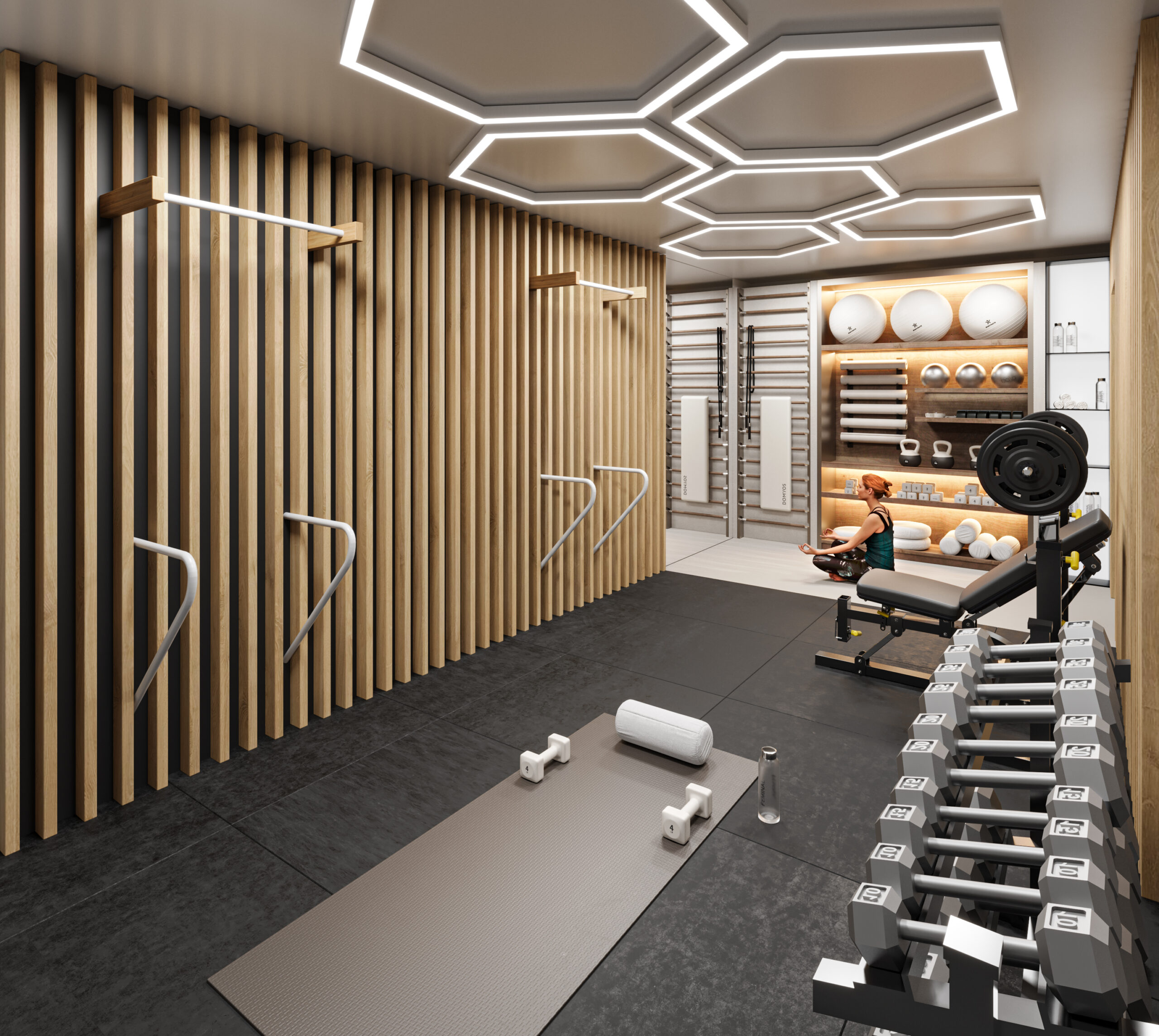 Na terenie przewidziano strefę siłowni i spa dedykowane dla mieszkańców.